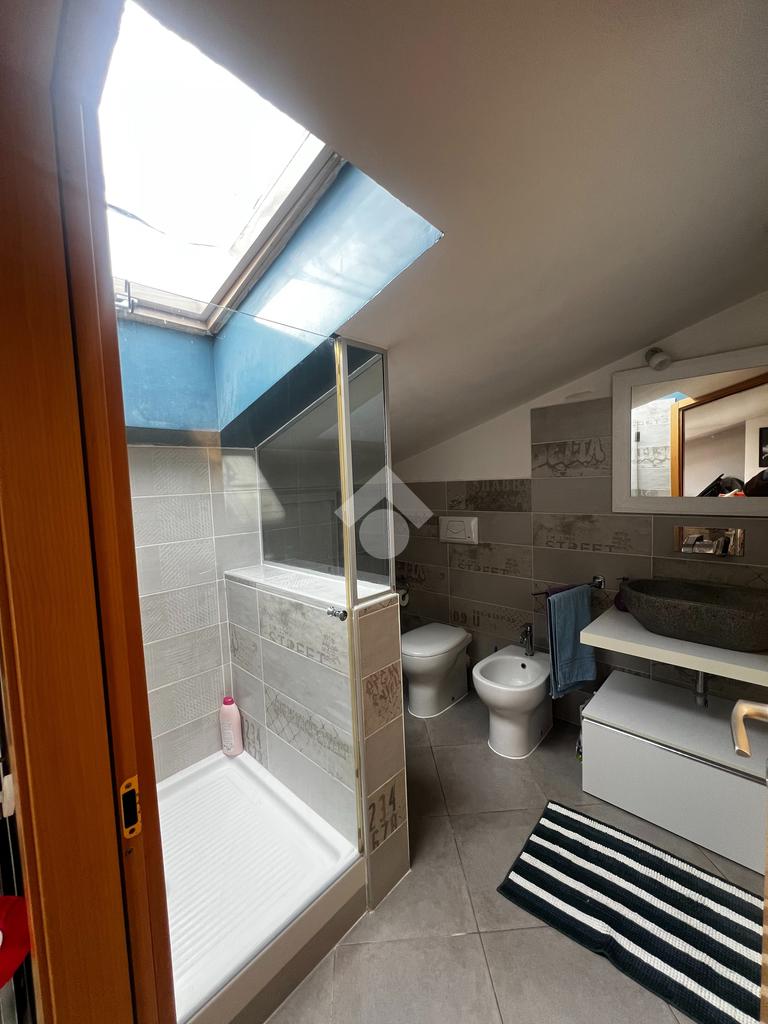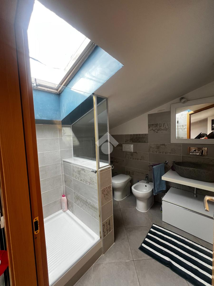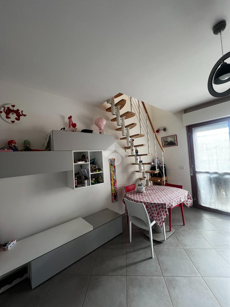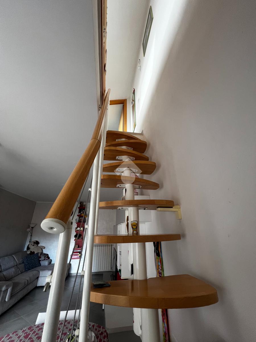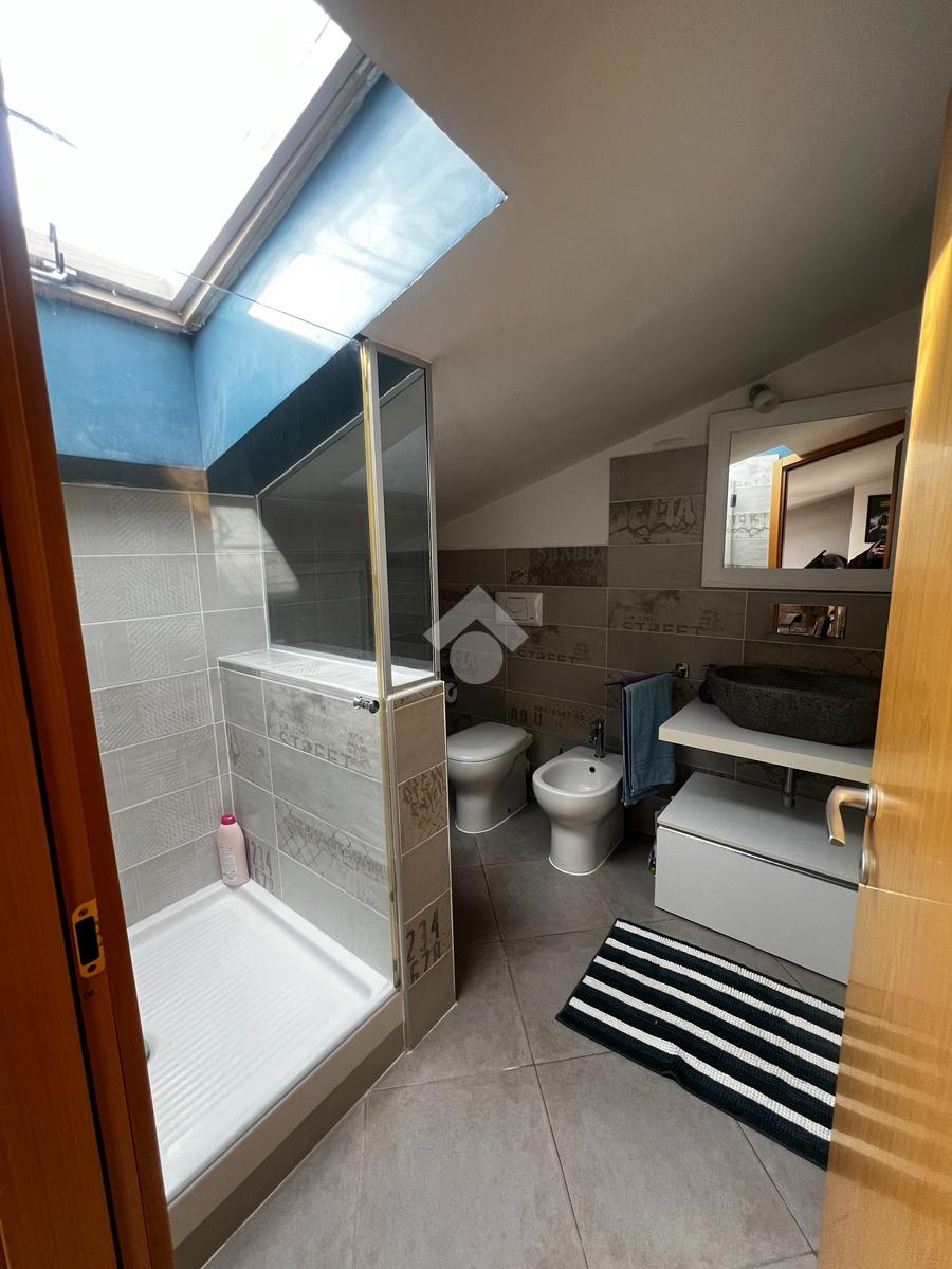 L’appartamento si sviluppa su due livelli e si distingue per la luminosità e la funzionale distribuzione degli spazi. Al piano principale troviamo un ampio salone con angolo cottura, un ambiente accogliente e ben illuminato, con accesso diretto al balcone che regala una piacevole vista panoramica. La zona notte è composta da una camera matrimoniale, una cameretta e da un bagno finestrato con vasca.
